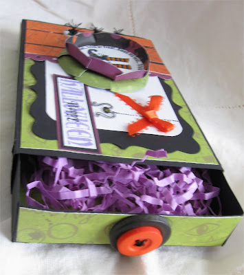 I actually cut the letters out onto yellow cardstock and used Distress ink (Marmelade) to shade and color. The monsters on the inside are from Recollection/Mike's